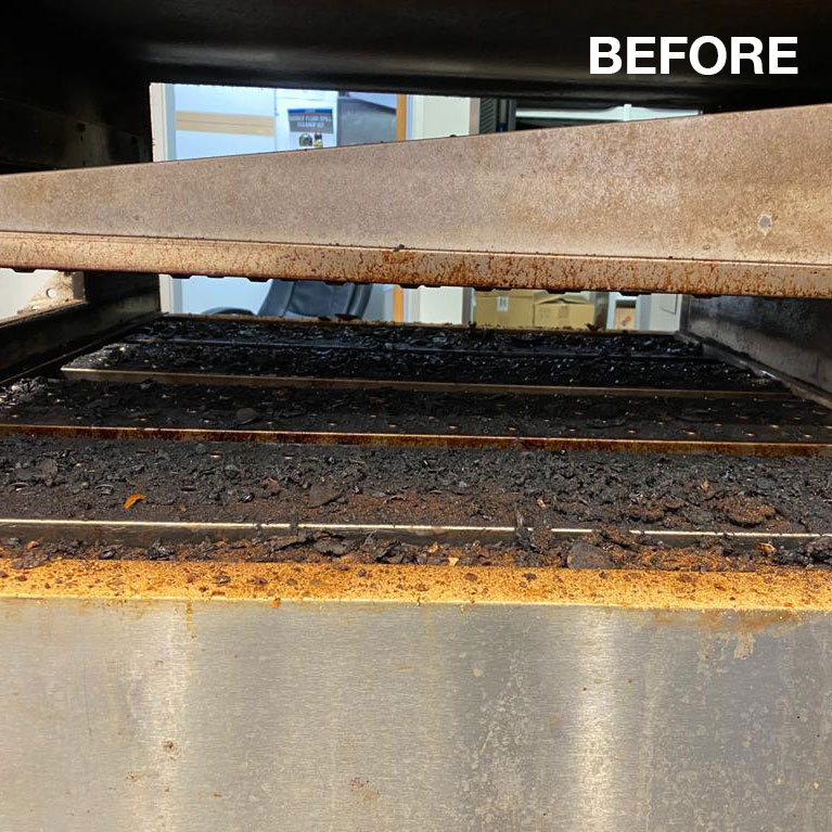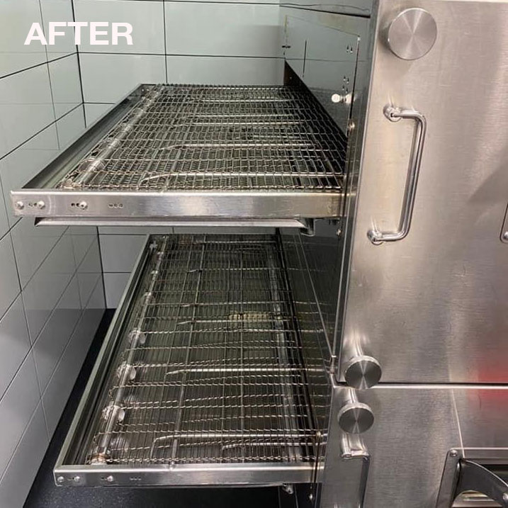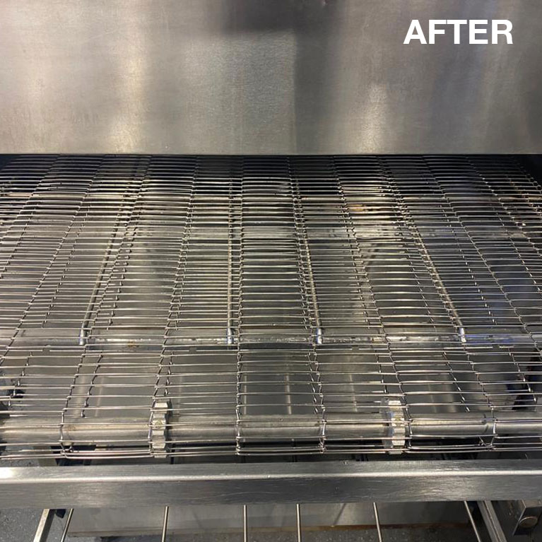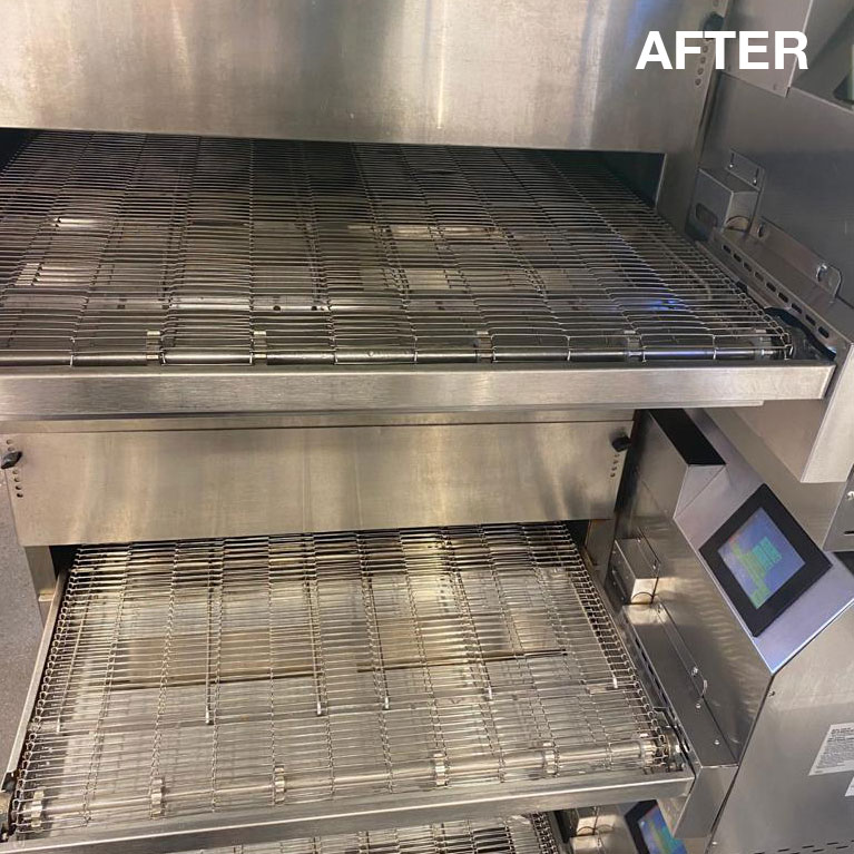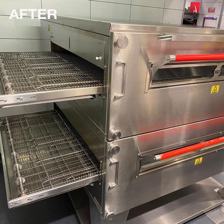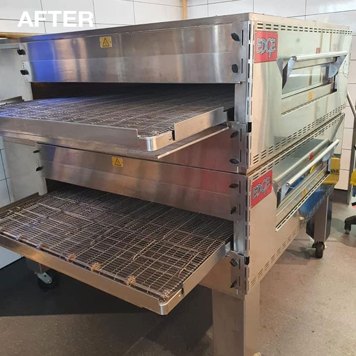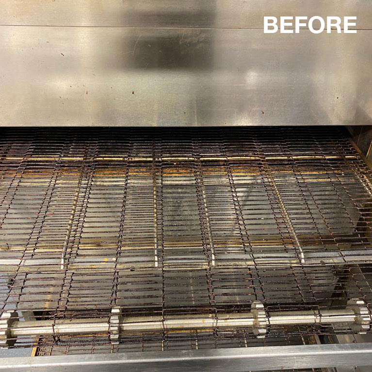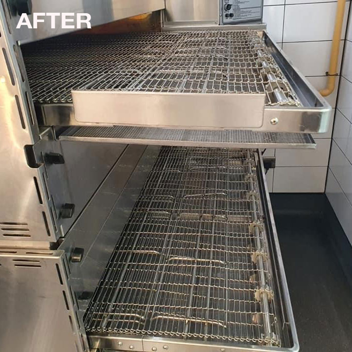 Stripping and cleaning of conveyor pizza oven.